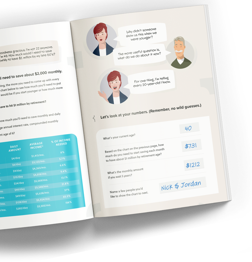 Scribble right on the page. Answer fun questions along the way. Get to know the characters. And complete the eye-opening money discovery at the end of the book.