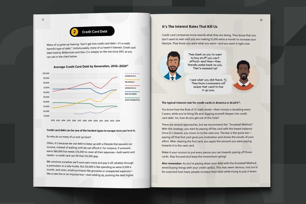 The book’s seven action steps are so powerful in cutting through financial noise that we call them Money Milestones. They create a clear roadmap to guide young adults toward lasting wealth and financial freedom.